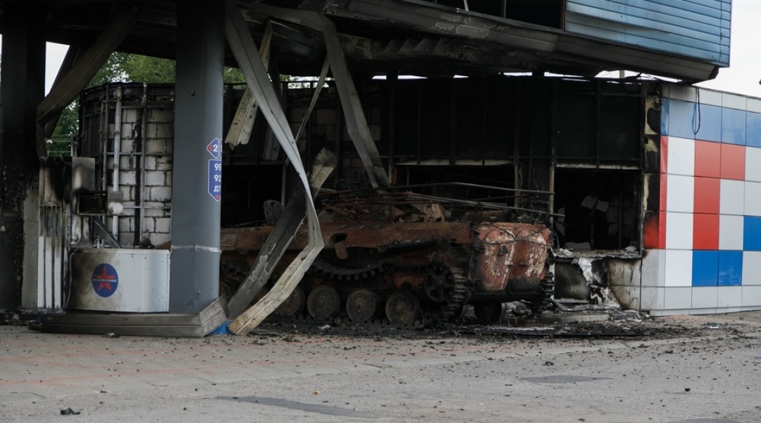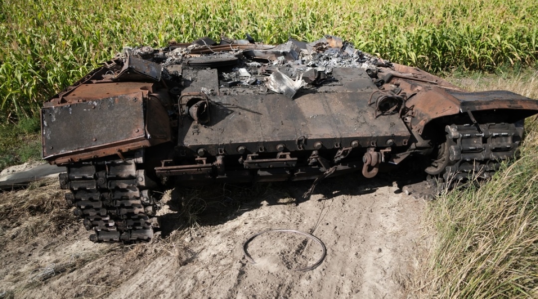 そこには、ロシアナンバーで敵の特別なマークのついた、焼け焦げたロシア軍の車両(戦車や歩兵戦闘車)が数台あった。