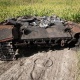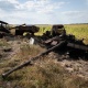 スジャ近郊の焼け焦げたロシアの装甲車両