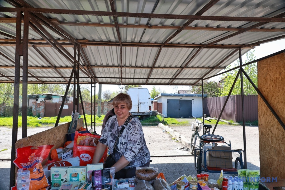 国家警察の最新のデータでは、ポクロウシクに残っているのは2000人以上。最初は、あり得ないと思った。そして、町の中心に近付くと、地元民に出会うことが多くなってきた。ほぼ完全に破壊された市場へ行く。しかしながら、そこでは、人と話せるし、コーヒーが飲めるし、食べ物が買えるし、服やペット用品まである。入口近くでは、箱の中に猫が子猫と一緒にいた。ペットのエサを売っている女性のところへ向かう。私たちは、500グラムの猫のエサを持っていたのだが、その女性は、「もし市場の猫のためなら、要りません。私たちは彼らをとても沢山食べさせているので、町中の通りの猫にあげてください」と言う。