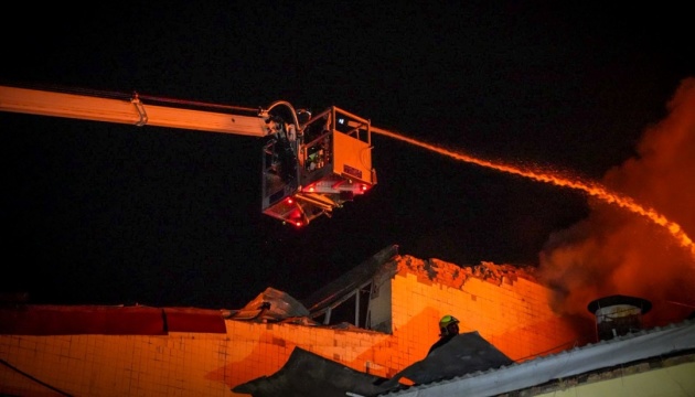 ウクライナへの全面侵略を続けるロシア軍による2日未明の攻撃を受け、中部キーウ州ブチャにて療養所が炎上した。