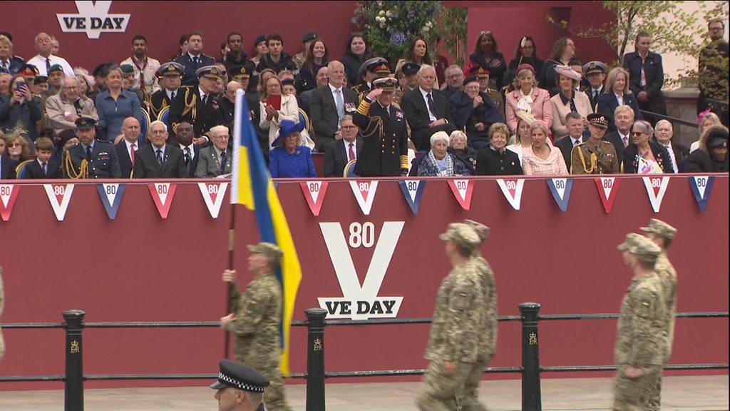 ウクライナ軍軍人は5日、ロンドンで開催された欧州における第二次世界大戦戦勝80年を祝う「ヨーロッパ戦勝記念日(VEデイ)」パレードに参加した。