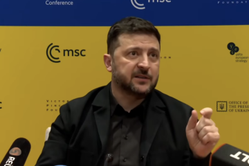 14日、ミュンヘン安全保障会議のエヴァルト・フォン・クライスト賞の今年の授与対象に「ウクライナの人々」が選ばれたことを受け、ゼレンシキー大統領が代表して同賞を受け取った。