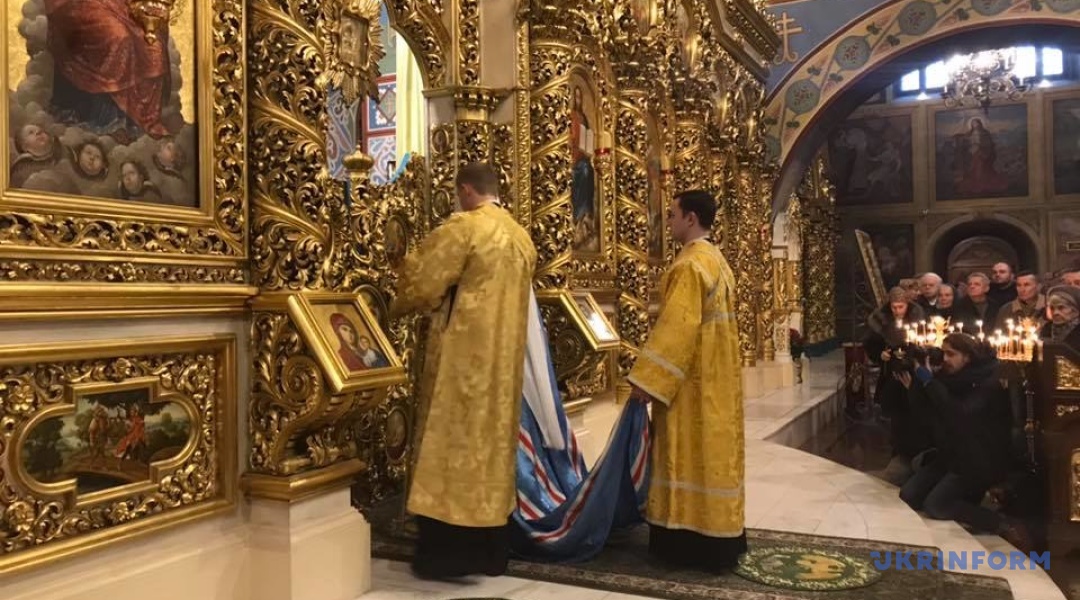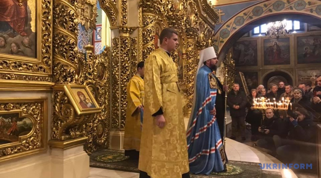16日、ミハイル黄金ドーム修道院にて、統一されたウクライナ独立正教会の首座主教である、エピファニー・キーウと全ウクライナ府主教は、最初の日曜の聖体礼儀を行なった。