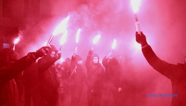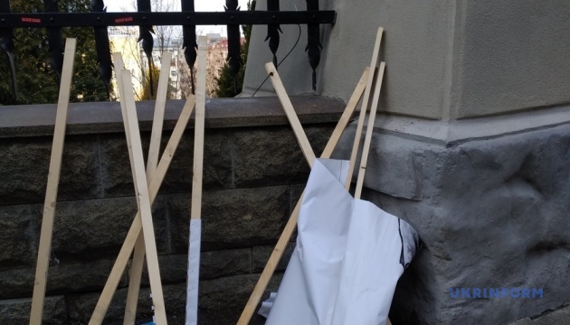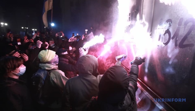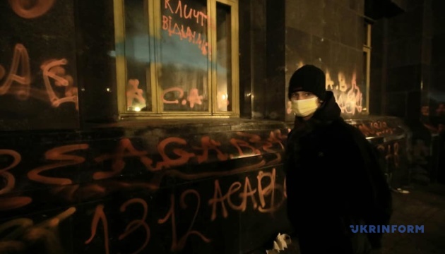 20日夜、キーウ(キエフ)市内大統領府前にて、活動家セルヒー・ステルネンコ氏に対する有罪判決を不当とみなす活動家による抗議運動が開催された。抗議者は、大統領府の建物に向けて花火や爆竹を投げたり、壁に落書きをしたりした他、入り口の扉を破壊す者も現れた。