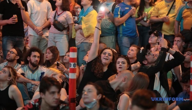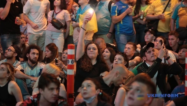 キーウ(キエフ)市内では、サッカーファンが試合終了のホイッスルがなる最後の瞬間までウクライナ代表の活躍を応援していた。